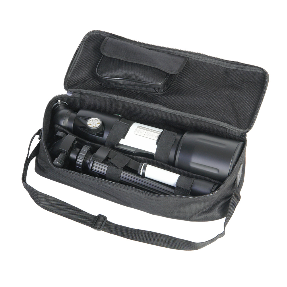 В комплекте поставляется специальный настольный штатив. Он имеет механизм плавных подвижек по вертикали и по горизонтали — с помощью вращающихся рукояток. Т. к. крепление трубы осуществляется с помощью винта 1/4", при необходимости можно использовать любой фотоштатив.