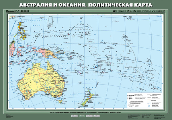 К-0719 - Австралия и Океания. Политическая картаМасштаб 1:14 000 000, Формат 100х70 см.