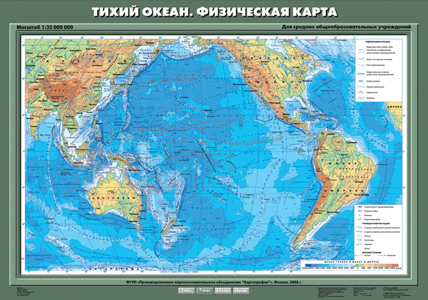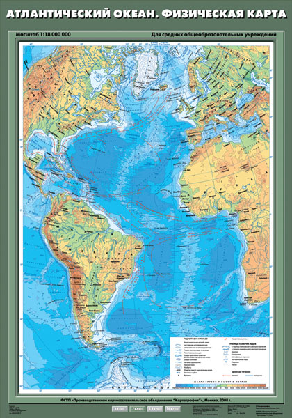На карте отображены гидрография материков,окружающих океан, рельеф суши и океанического дна,границы ...