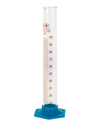Цилиндр с рельефной градуировкой предназначен для отмеривания нелетучих жидкостей.