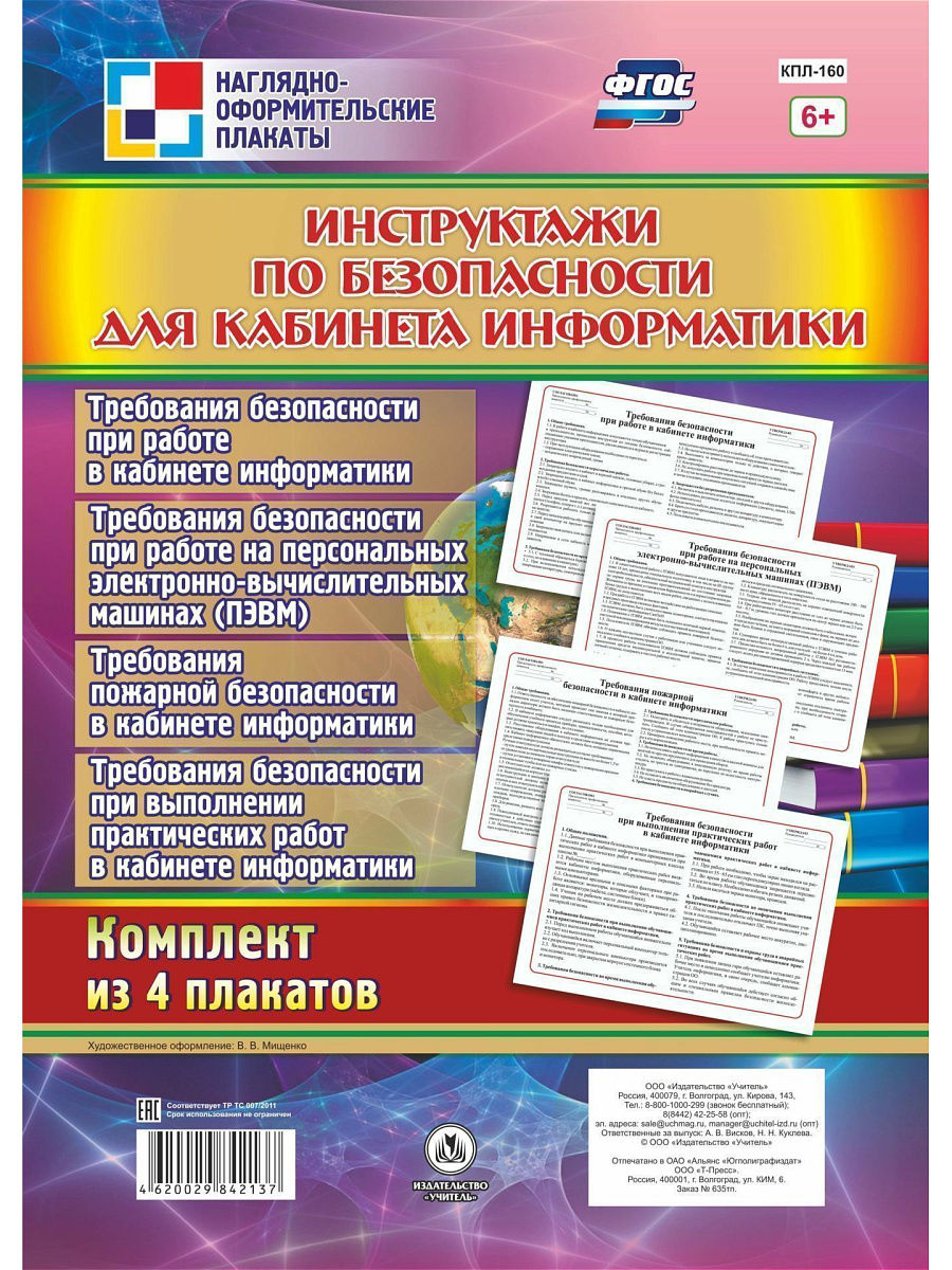 Наглядно-оформительский комплект "Инструктажи по безопасности для кабинета информатики" включает 4 плаката, которые необходимы для оформлени...
