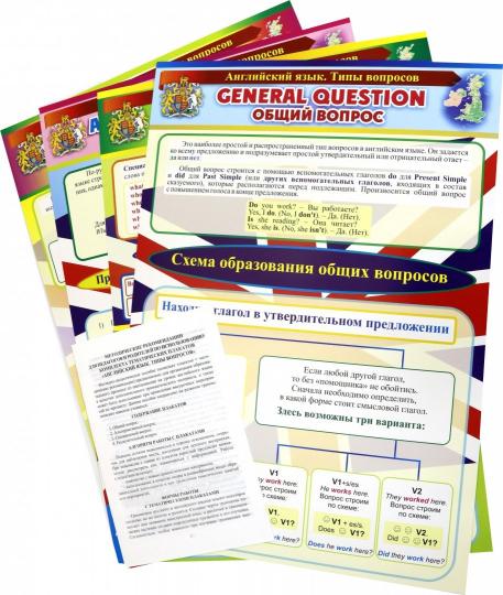 КПЛ-210.Комплект плакатов "Английский язык. Типы вопросов": 4 плаката с методическим сопровождением