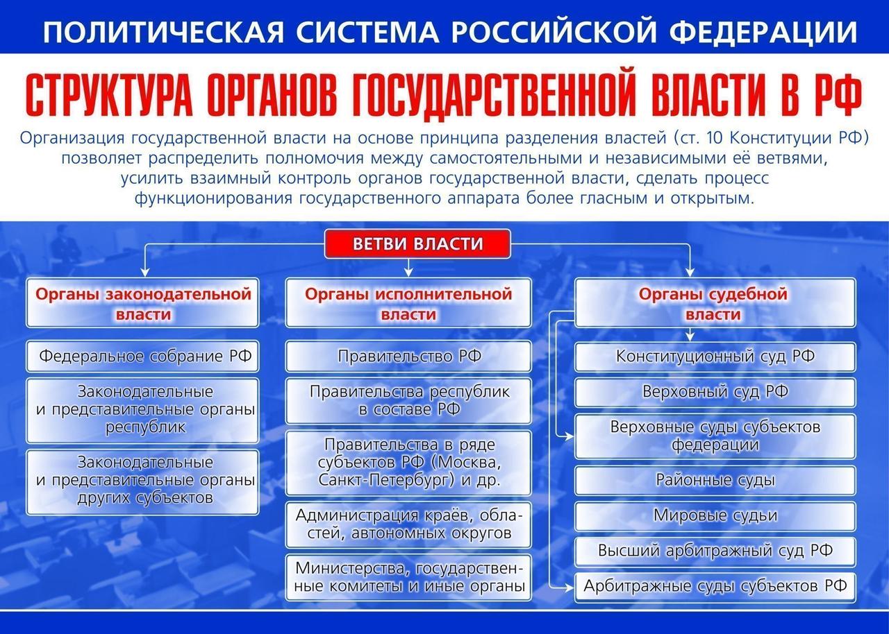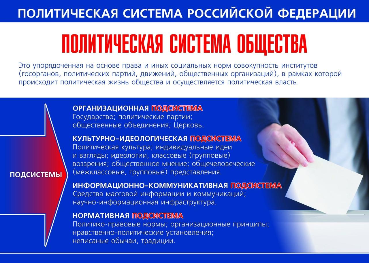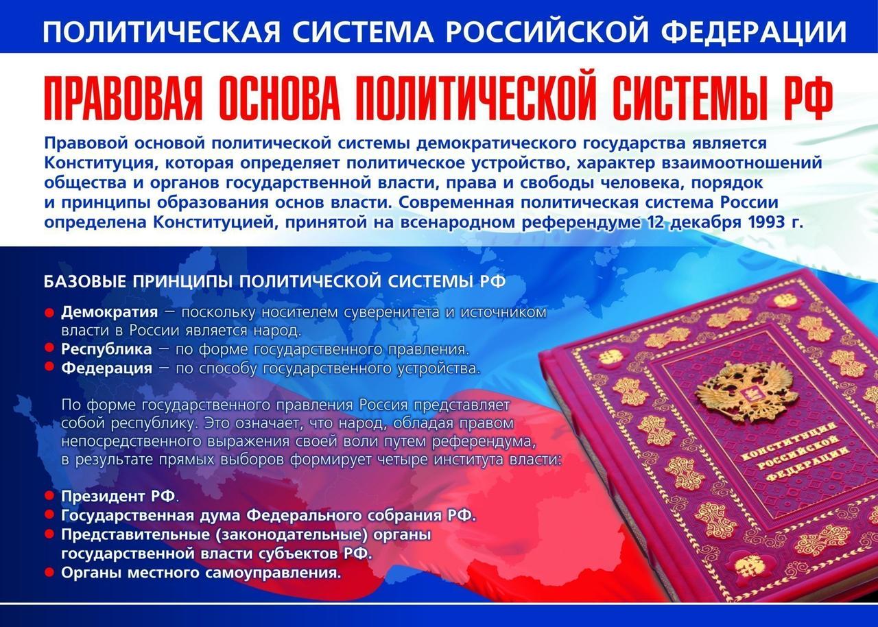 КПЛ-196 Комплект плакатов "Политическая система Российской Федерации": 4 плаката (Формат А3) с методическим сопровождением