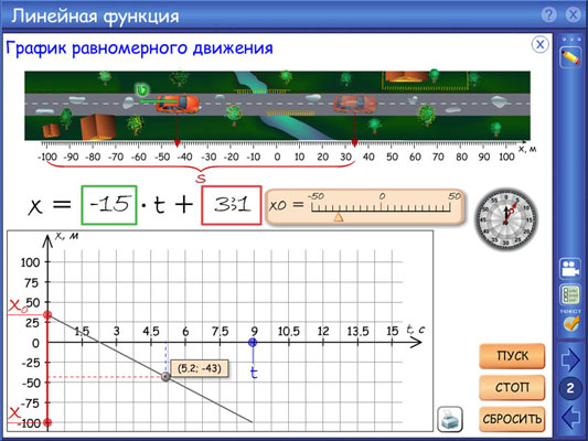 Мультимедийные объекты в программе составляют анимации, таблицы, интерактивные графики, числовые значении, тесты.