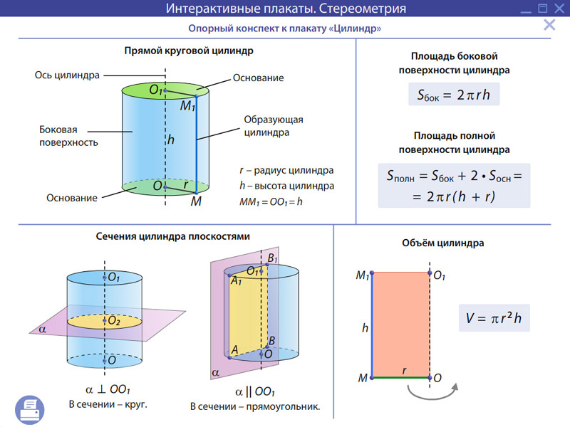 Сечения цилиндра плоскостями