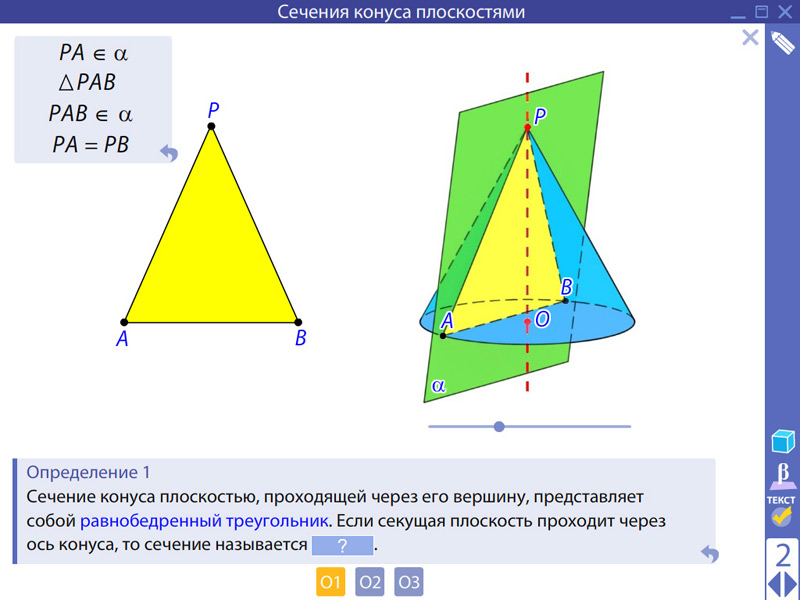 Сечения конуса плоскостями
