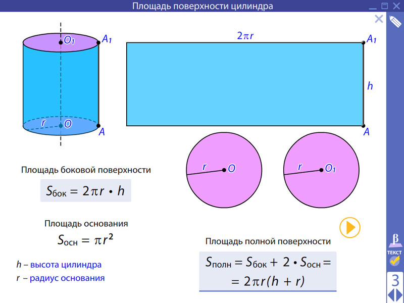 - Площадь поверхности цилиндра