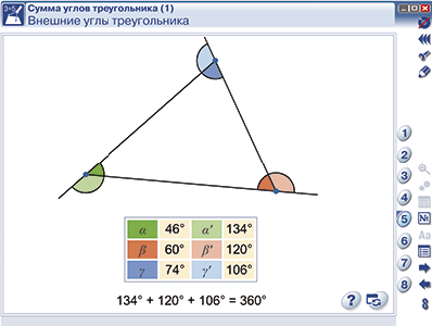 Отличительной особенностью интерактивного учебного пособия «Треугольники» является создание собственной тематической последовательности курса с возможностью включить дополнительные медиаобъекты в структуру самого пособия.