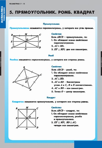 Треугольники. Свойства прямоугольного треугольника. Равенство треугольников. Признаки и свойства параллелограмма. Прямоугольник. Ромб. Квадрат. Трапеция. Многоугольники. Окружность и круг. Многогранники. Тела вращения.
