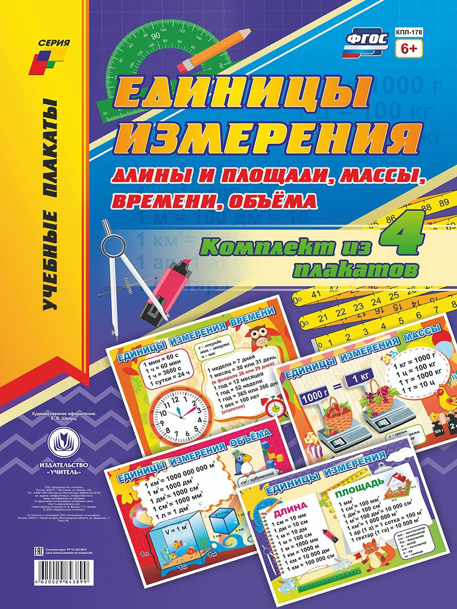 Комплект учебных плакатов по теме "Единицы измерения" представлен четырьмя плакатами: