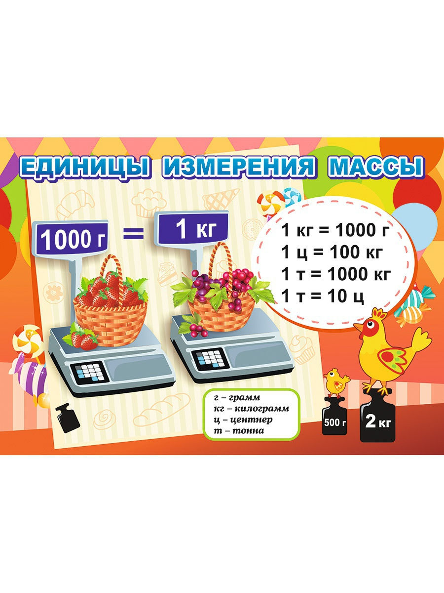 Предназначен для наглядно-тематического применения на уроках и во внеурочной деятельности и позволяет педагогам обучать учеников младшего школьного возраста на основе принципов наглядности, доступности и дифференциации, необходимых для реализации требований ФГОС НОО, продуктивно использовать при изучении тем "Именованные числа", "Периметр", "Площадь", в решении задач с единицами измерения. Обучающимся 7-10 лет плакаты помогут при педагогической поддержке взрослых (родителей, учителей, воспитателей) познакомиться с единицами измерения длины, массы, времени, объема и их соотношениями.