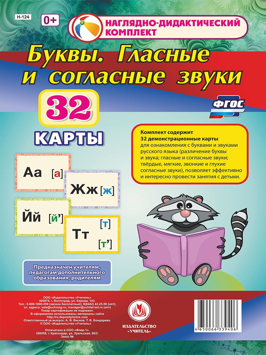Комплект содержит 32 демонстрационные карты для ознакомления с буквами, зв...