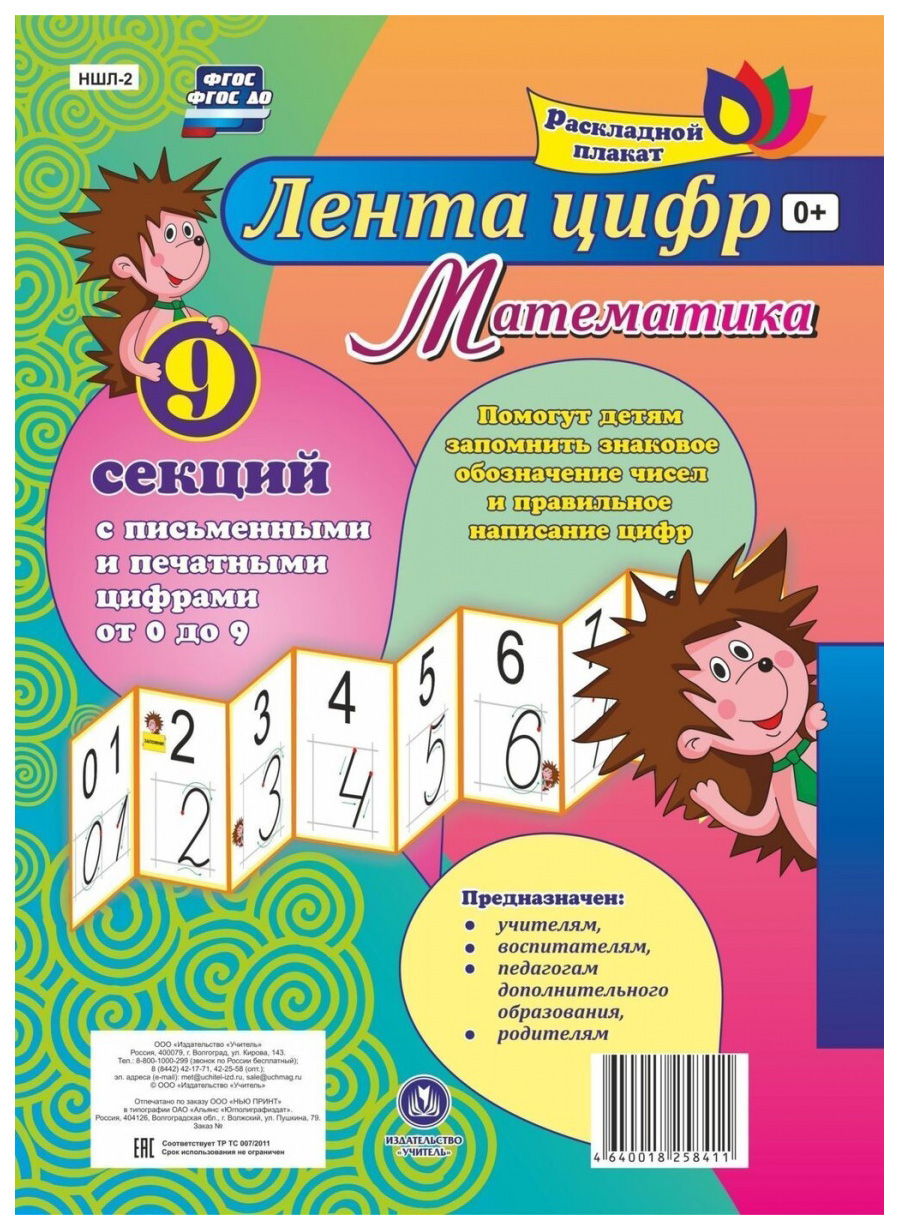 Раскладной плакат из 9 секций с письменными и печатными цифрами от 0 до 9 поможет детям 5-7 лет при ...