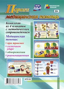 Комплект из 4 плакатов с методическим сопровождением. В комплект входят плакаты "Медицинская помощь": - при травмах; - солнечном ударе; - ...