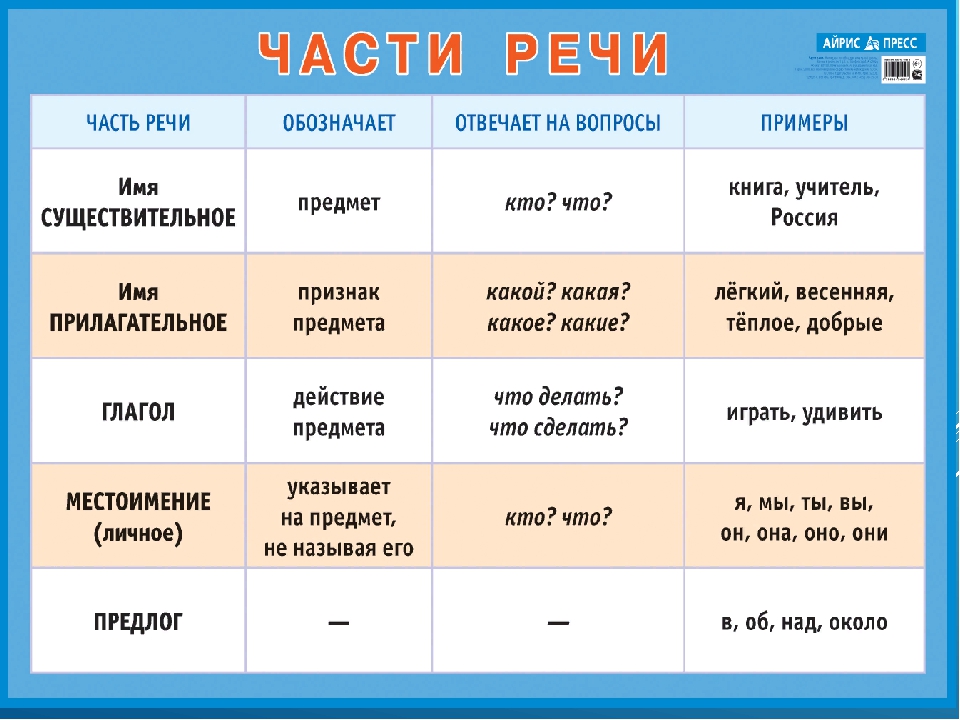 Части речи. Наглядное пособие для начальной школы (большой формат)