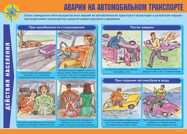 В комплекте раскрываются действия населения при авариях на химически опасных, радиационно опасных, гидродинамически опасных и пожаро взрывных объектах, а также авариях на автомобильном, железнодорожном, воздушном, водном транспорте и авариях на коммунальных системах. Один из плакатов посвящен действиям при внезапном обрушении здания.