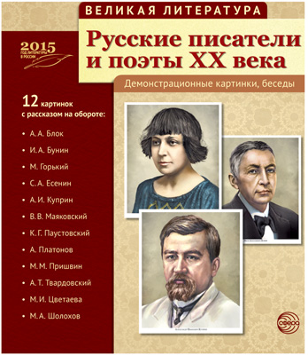 ПОРТРЕТЫ Великая литература. Русские писатели и поэты XX века. 12 демонстр.картинок с текстом (210x250мм)