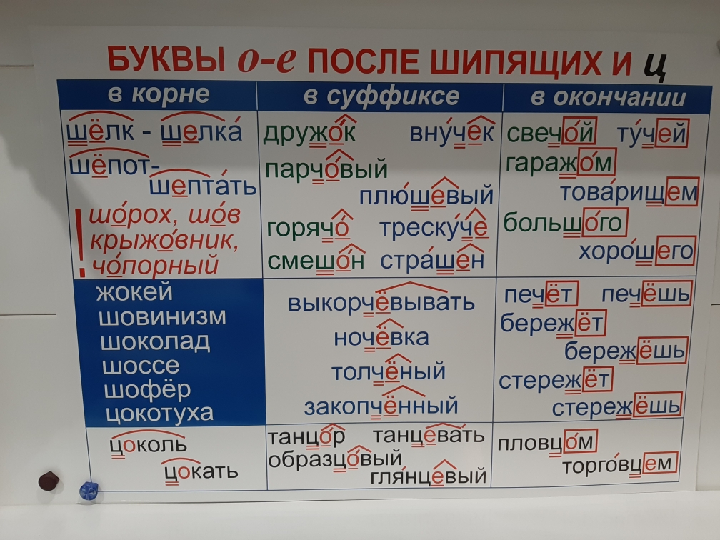 7. Правописание О - Е после шипящих и Ц.